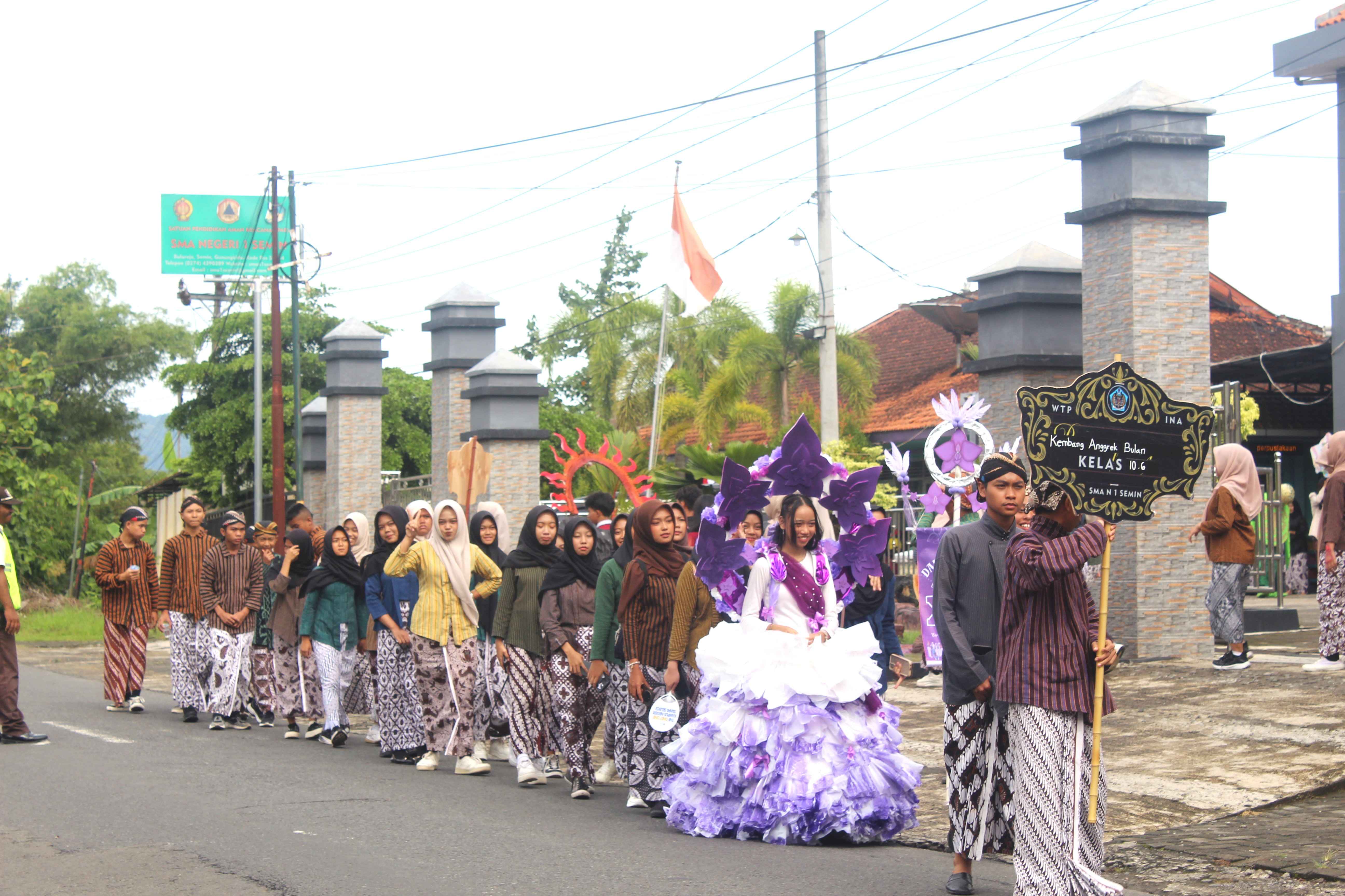 Dalam rangka memperingati Hari Jadi ke-271 Daerah Istimewa Yogyakarta, keluarga besar SMAN 1 Semin menggelar kegiatan Kirab Budaya dengan penuh semangat dan khidmat. Mengusung tagline “Mulat Sarira Jumangkah Jantraning Laku”, kegiatan ini menjadi momentum refleksi diri sekaligus penguatan komitmen untuk terus melangkah membawa nilai-nilai budaya dalam kehidupan sehari-hari. Kegiatan dilaksanakan dengan melibatkan seluruh siswa, guru, dan pegawai sekolah. Acara diawali dengan Apel Budaya di halaman sekolah yang berlangsung tertib dan penuh makna. Dalam amanat apel disampaikan bahwa peringatan hari jadi ini bukan sekadar seremoni, melainkan ajakan untuk mulat sarira (introspeksi diri), memperbaiki sikap dan perilaku, serta terus bergerak maju selaras dengan nilai luhur budaya Yogyakarta.Usai apel, kegiatan dilanjutkan dengan kirab budaya yang menempuh rute di sekitar wilayah Semin. Sepanjang perjalanan, rombongan kirab menampilkan kekayaan budaya melalui busana adat gagrak DIY yang dikenakan seluruh warga sekolah.