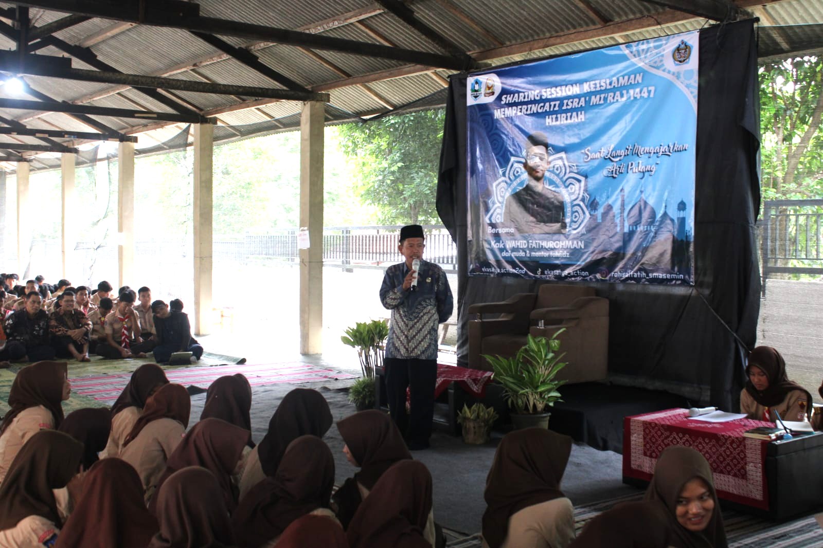 Kegiatan peringatan Isra Mikraj tahun ini mengusung tema “Saat Langit Mengajarkan Arti Pulang”, yang mengajak seluruh warga sekolah untuk merenungkan kembali makna perjalanan spiritual Nabi Muhammad SAW sebagai sarana memperkuat keimanan dan ketakwaan kepada Allah SWT.